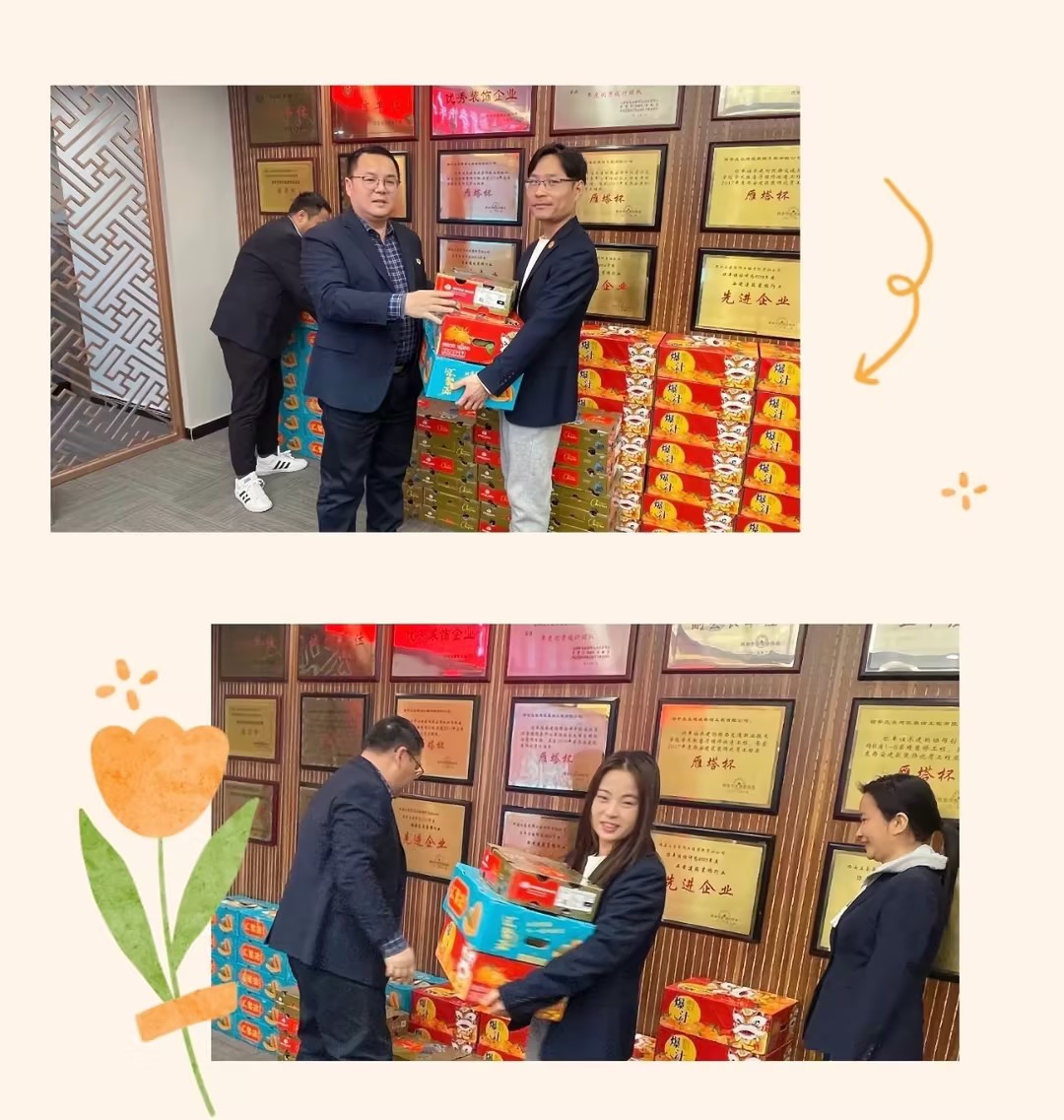 貳零貳肆甲辰龍年笑語辭舊歲,喜迎金龍年又是一年春節(jié)至,福利滿滿到心田在2024年新春佳節(jié)來臨之際為表達對員工濃濃的新年祝福感謝大家一年來的辛勤付出立豪集團為全員發(fā)放春節(jié)福利 ,最是歲寒情暖時,殷殷關懷沁人心。2月1日上午,集團副總經理賴吉軍、副總經理桂志平代表集團向總部員工發(fā)放了暖心的春節(jié)福利,提前為大家送上節(jié)日的祝福和問候!